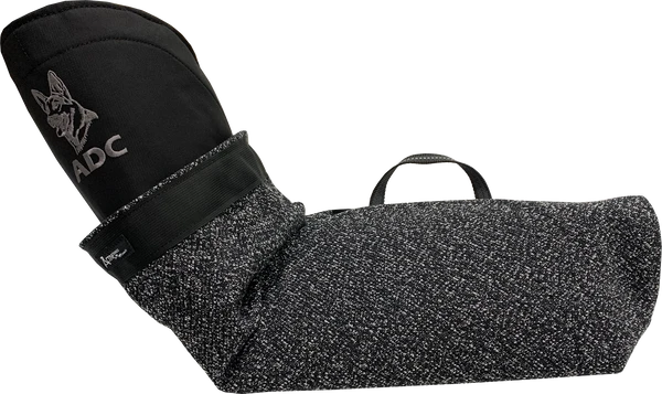 A great feature of this sleeve cover is the lining is slippery so putting it on the sleeve isn’t a struggle. The sleeve cover comes with an attached rubber grip handle. If you choose to not have the handle you can simply cut off the webbed handle. Made in the USA. This sleeve cover will fit any of the ActiveDogs bite sleeves.