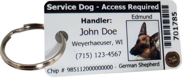 Our 3 Part Key Tag Identification Card provides all the information clearly for your Service Dog on one easy to read, high quality, ID card. When you purchase this card you will also receive a FREE entry to our online registry database which can be validated from any smart phone, tablet, or computer.