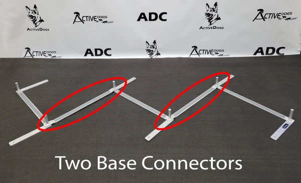 The low-profile base connector is taper bent so it will always lay flat on the surface and the dog will not have to adjust its step height when working through the weaver poles. This connector plate is so easy to use. There are no screws to adjust just simply slip the connector over the base posts. Because it slips over the base posts it will not slide apart when being used with the base. You can rotate and pivot the connector to any angle you choose for your weave pole system. The Activedogs.com connector base plate is aluminum with a rubberized no-slip surface. Aluminum is more rigid than steel, does not rust, and does not conduct the heat. A great safety feature for the dog’s paws. This connector plate will work with any of the Activedogs.com Agility Weave Pole System products.