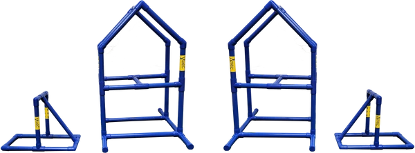 Both bases come with a 10” metal bracket to attach your base and plank together. This makes these bases incredibly sturdy and stable. The bottom ground area of the base is wider than the top so the base will not be tippy. Having a wider base allows the base to be firmly planted on the ground. The center cross bar in these bases keeps its shape formed and square.