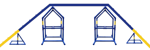 Bases and ramps are stand-alone products that are designed for the weight of a 12’ plank board and two 12’ plank board side ramps. Additional center support (350783) can be purchased separately. A center support will help with plank bounce. The assembled base is 46.5” tall so when adding the plank board with a depth of 1.5” your walk will be competition height of 48”.