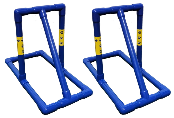 A pair of two Agility PVC Ramp Supports that can be used to help stabilize any dog walk side ramps.