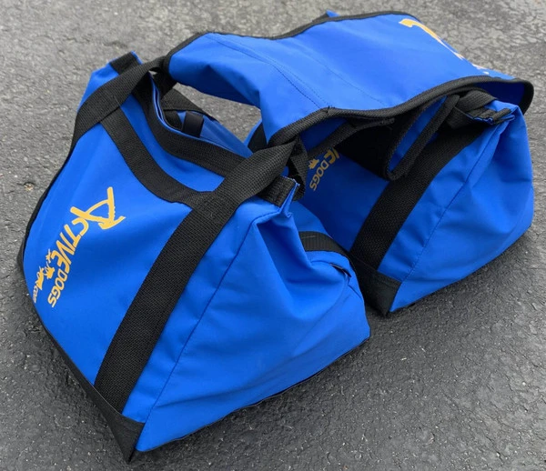 The Activedogs.com Tunnel & Chute No-Slip Sand Bags are large holding 35#’s each. They are made from outdoor marine grade UV protected fabric. We have used this fabric on our field equipment for 20+ years and it has stood the test of time.