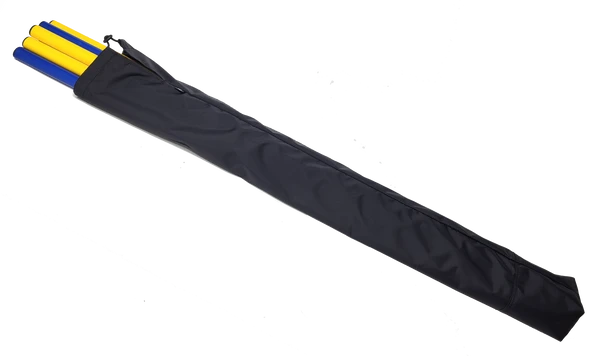 A convenient way to carry and store those slippery weave poles. This weave pole draw string bag will hold up to a dozen 1”x 40” weave poles. It has a cord lock to close and keep the bag top closed. The bottom of the bag is squared so it nicely holds its shape and works better for standing when loading the weave poles. The bottom section of the bag is constructed of double fabric so it is reinforced for strength. The bag is made from nylon fabric and is black in color.