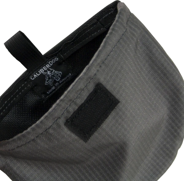 The bag comes complete with a binding loop so you can easily grasp it out of your vest pocket. A Hook Tape is sewn onto the exterior so it can secure to the Loop Tape on the CaliberDog vest. USA MADE