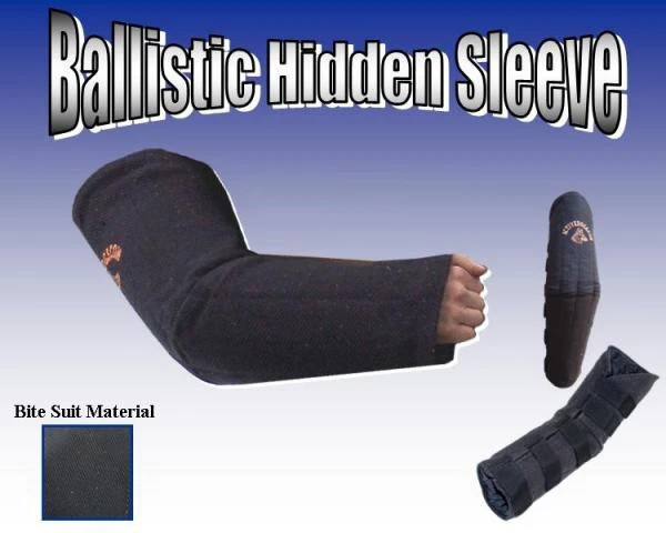 We offer the Hidden Bite Sleeve in Bite Suite (french linen) or Ballistic (military) Material and two sizes. Each sleeve is gusseted and lined for maximum comfort and protection. There are 5 Hook and Loop closures on the inside to allow the sleeve to adjust for a personalized fit.