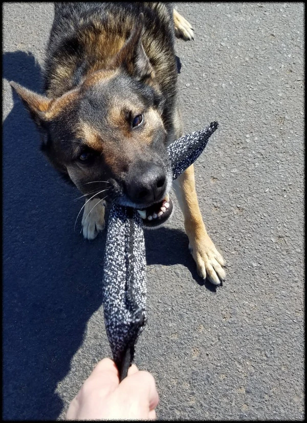 Our French Linen Bite Suit Tug is the perfect size for bite-work, quick reward, & building motivational drive. This newly designed Bite Suit Tug now has a specialized Geo-Tec layer that gives this tug added durability & strength. The outside layer of Bite Suit material gives the tug a desirable softness while stuffing the tug to a firm grip gives the desired bite level. Now with longer life span and added strength, your dogs favorite tug will be able to stick around longer than ever.