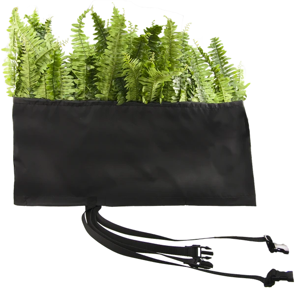 Constructed out of the same exterior fabric that our hurdle is constructed of, the top foliage is soft and will not hurt the dogs underbelly. The foliage is bendable so you can arrange it how you would like and if it gets smashed down just bend it back in position. Slip the Brush Boot Topper easily over the hurdle. The weighted hem in it and two buckling adjustable securing straps hold it securely in place. The Brush Boot Topper will not fall off or be pushed off the hurdle. When not in use roll up for easy storage. Because the side poles slip through the Brush Boot Topper the topper can be used when the jump is at any height you set and use. Made in the USA