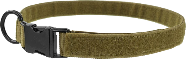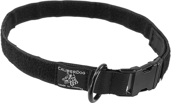 CaliberDog ID collar is designed to carry any of our 1×5″ hook and loop ID panels. This collar can be adjusted to fit a dog’s neck from 16” to 26” in circumference. It has a strong 1″ metal side-release buckle and a 1” welded D-ring. The CaliberDog 1″ ID Collar is made from 1” wide military spec webbing. It comes in two colors, black or coyote.