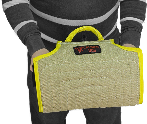 The CaliberDog Bite Developer is made by professionals for professionals. This sturdy sleeve will last for a long time when the sleeve cover is used. The sleeve is made from NK material which is specially made for bite sleeves. There is no more metal or hard plastic for increased safety for the canine. The sleeve bite bar can be adjusted in 3 ways. There are 2 inserts in the bite bar which can be removed to decrease the stiffness of the bar. This feature is ideal for training puppies or canines new to bite development. There is a padded handle inside the sleeve for comfort. The barrel of the sleeve is made from hard plastic to protect you from any missed bites. The hand stitching not only make the sleeve look great but it gives it outstanding durability.