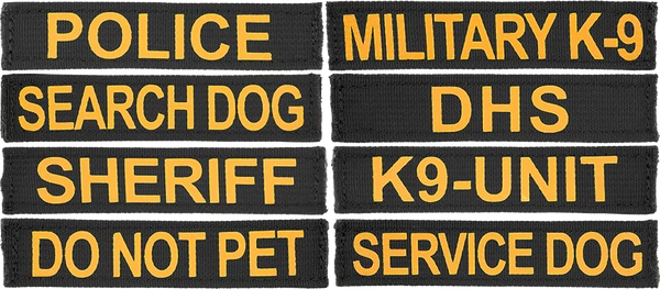 CaliberDog 1×5″ ID Panel with Black lettering on Coyote or Gold lettering on Black. Uses hook & loop to attach securely to items such as CaliberDog 1″ ID Collar (844101).