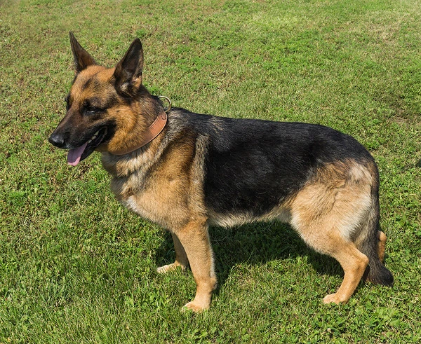 The CaliberDog Leather collar is hand crafted with exquisite decorative grooved detailing. The collars are made with either black latigo leather or tan harness leather to provide top quality and durability. Both feature brass plated hardware and gorgeous white stitching for additional strength. They offer a leather loop to feed the loose end of the collar back through which improves comfort and appearance. The collars are made with 1.5” wide single layer leather, making them light and pliable, yet extra thick leather for maximum strength.. On each collar there are 7 holes of adjustment and there is 1″ in between each hole.
