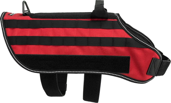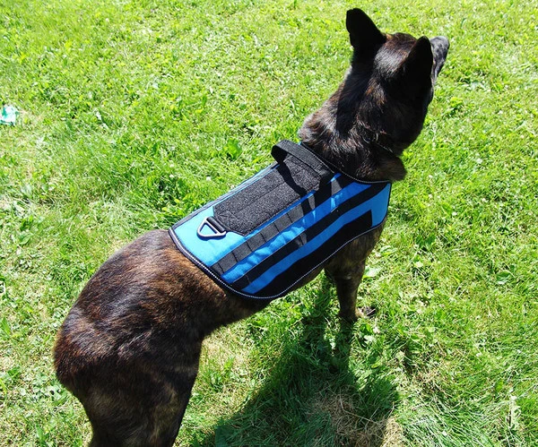 Designed in the traditional MOLLE fashion so you can use all MOLLE accessories with this vest. High quality poly webbing was used, and there are 13 colors to choose from with this vest. Comfortable wide grip handle and 1 V-ring which could be used with a leash. Made in the USA