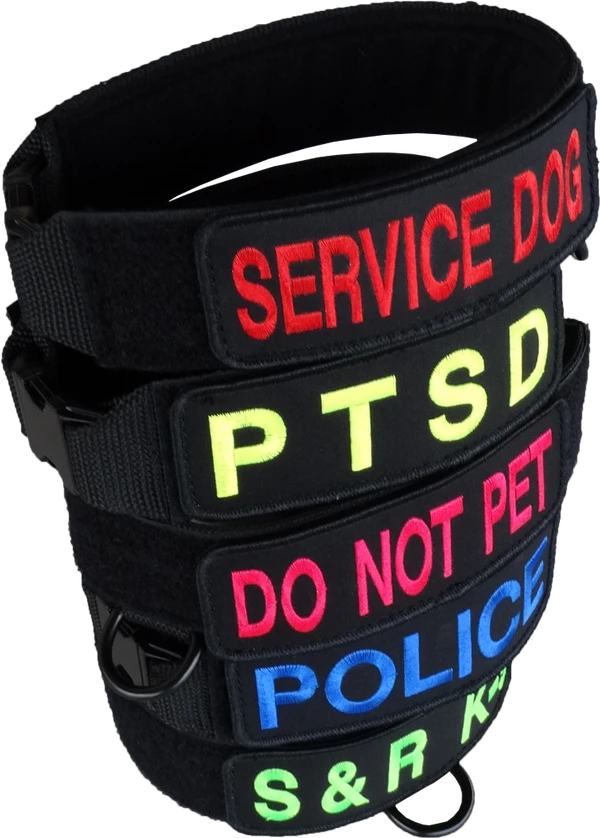 This collar comes with two 2″ x 6″ patches. They are interchangeable and attach to the collar using hook & loop. Pick from standard text or enter your own text. All letters will be embroidered in upper case. Choose from 29 colors for each patch. Patches are embroidered using strong polyester thread for long lasting quality. Embroidered in our embroidery department. Made in USA