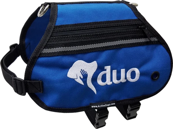 We have designed our Custom Logo Butterfly Dual Pocket Dog Cape Vest for those dogs who need to transport a few objects that do not require the larger backpack or saddlebag vest. The Custom Logo Butterfly Dual Pocket Dog Cape Vest is lightweight, simple and very functional. The pockets do not expand like the saddlebag or backpack vest; yet, they are wide enough to fit a checkbook size wallet, sunglasses, keys, pill bottles, identification papers, etc. in them. Since the vest has a wide pocket design, we have placed two girth straps on the Custom Logo Butterfly Dual Pocket Dog Cape Vest to keep it in place while the dog is moving. Both girth and chest straps are adjustable.