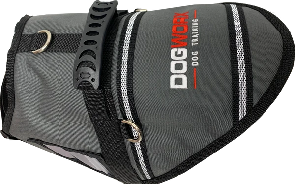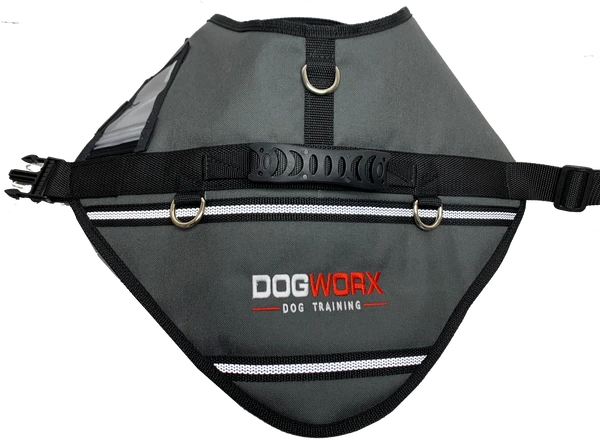 On top of the vest, there is a heavy welded D-ring for attaching your leash/lead. The girth strap is adjustable and allows your dog the mobility that it needs to work, run, and jump. The chest strap has a two-way adjustment.