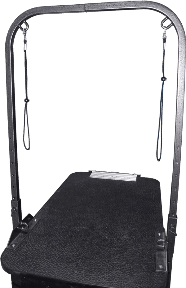 The stand is adjustable with locking side pins. It adjusting poles move smoothly and it is adjustable up to 40″ tall off the table. This will accommodate even the largest of breeds. The Double Arm Stand is made of no rust aluminum. This one inch thick aluminum is welded and double powder coated for life long use.