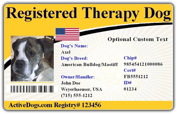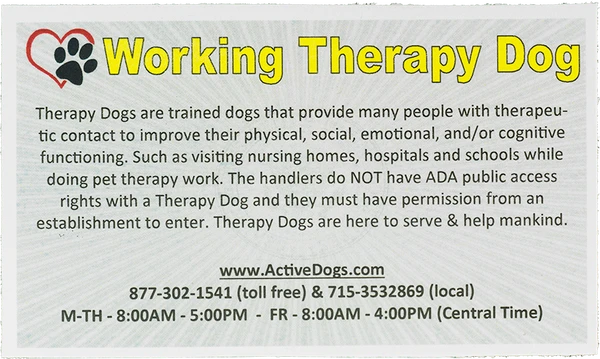 On the back of the ID is a statement about the therapeutic work that these dogs perform.