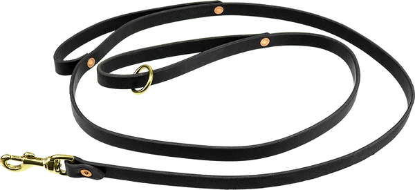 The 3/4″ wide Double Handle Leash is made of quality latigo leather, using copper rivets and solid brass hardware for durability. The two handles allow a trainer maximum control over his/her canine.