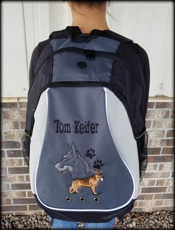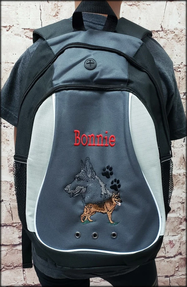 Each embroidered portrait features a full body, set of paws and a large multi colored head design. We offer this backpack with personalization up to 20 characters at no additional charge. Embroidered at Activedogs.com