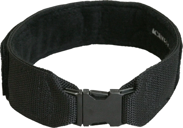This dog collar has all metal hardware. The black, contoured side release metal buckle is sized smaller than the 2” collar. There is a welded, black metal D-ring attached to the top of the collar for easy leash attachment.