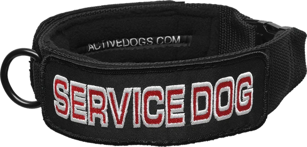 Our Patch dog Collar is made with two layers of 2” heavyweight polypropylene webbing. It is lined with fleece on the inside to provide the dog comfort and less neck strain. They are individually sized to properly fit your dog.
