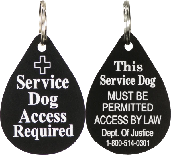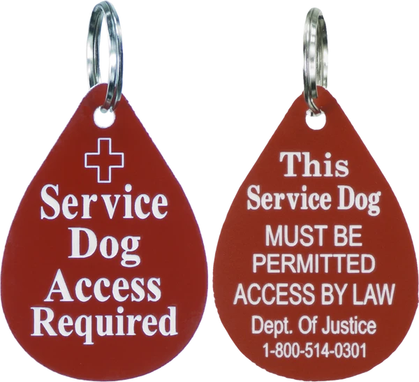 The Engraved Service Dog Access Tag is made with an hard acrylic material that will withstand any weather element. Engraved on each side. Made in USA.