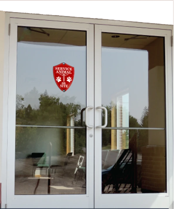 Inform people that there is a service animal on the premises with this Engraved Service Animal Sign! Made with colored acrylic displaying in an easy-to-read recessed lettering. Includes two suction cups to attach to either side of the sign. Produced using a high-quality laser engraving for sharp edges. Made in the USA