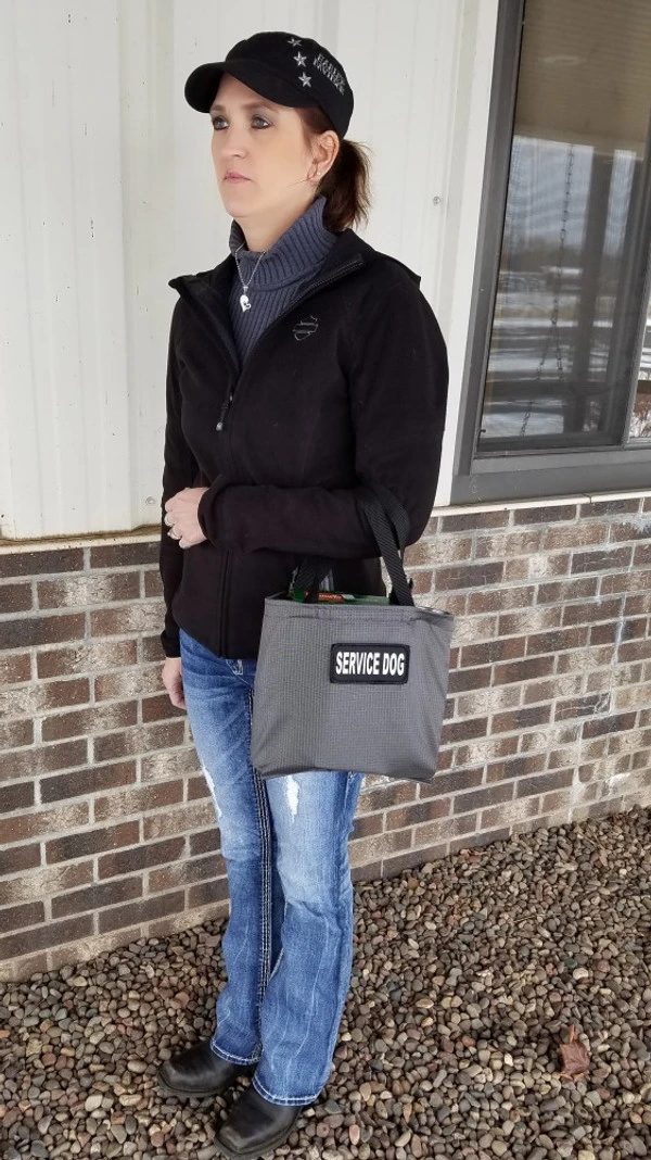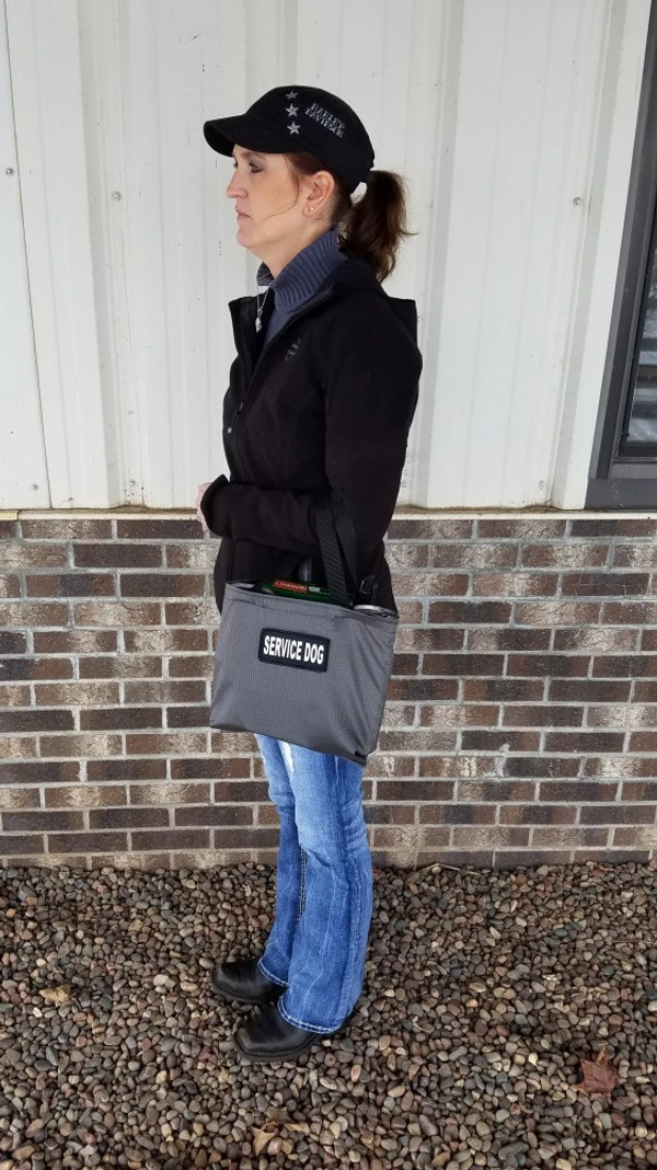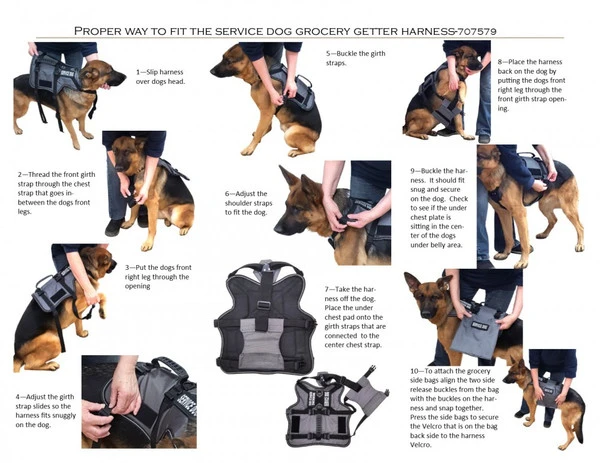 This is a replacement bag for the Service Dog Grocery Getter Harness. The bag has expanding sides when holding groceries. There are tuck away handles to carry the bag and hook & loop closing interior flaps on the inside of the bag. This bag fits secure on the harness by two side release buckles and hook & loop.