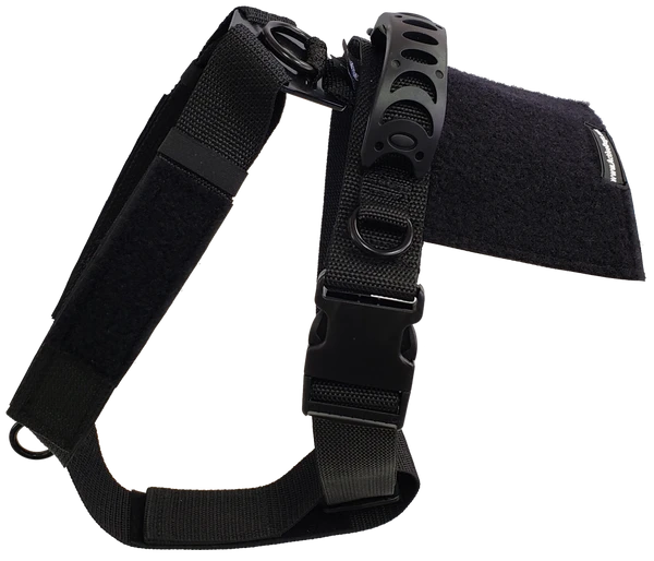 - Form Fitting Harness, 2 D-rings, Adjustable Buckles, Molded Handle, 2 Standard Patches