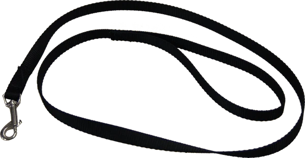 A nice width and length sized leash. It is 5/8″ wide and 5′ in length with a looped handle end. It is made with stitched ends for strength. Our Heavy Nylon Leash is made from heavy nylon web for added durability. Choose from 5 colors. Made in the USA at Activedogs.com Matching collars available.