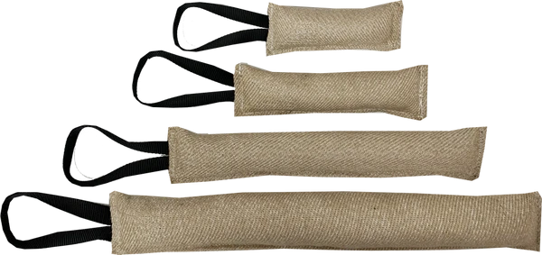 These tugs work great for training, bite-work, and building motivational drive. Tug exterior material is woven to our specifications for tugs that are made to be worked over and over again. You will be impressed with the tugs stability and with the tugs heavy duty quality.