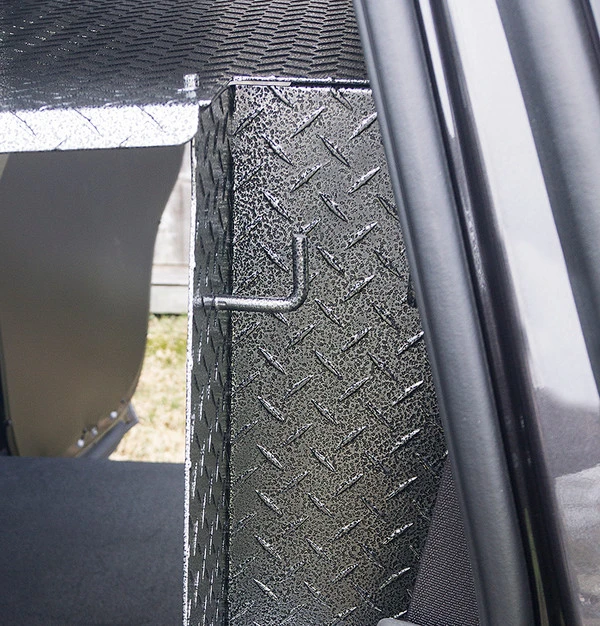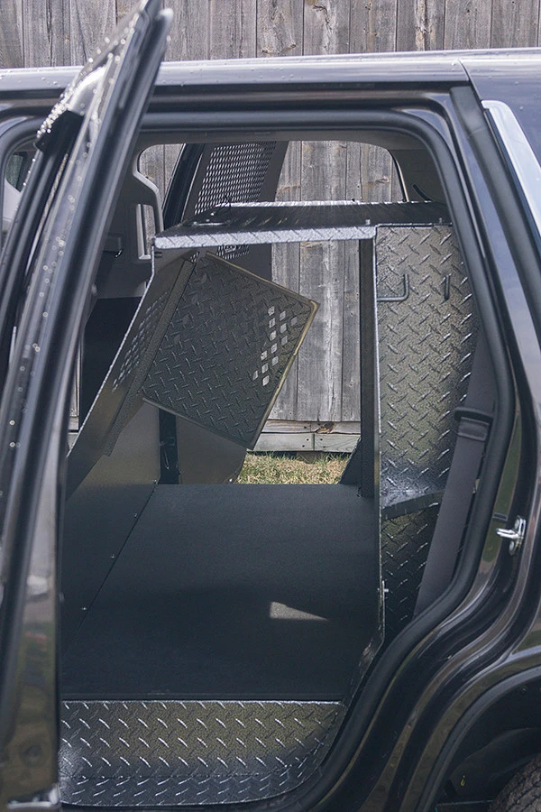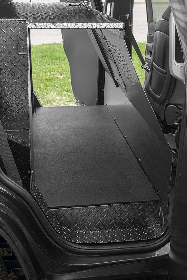 Includes 1/2″ thick solid rubber mat for the K9 area. An LED light is also included in the K9 area.