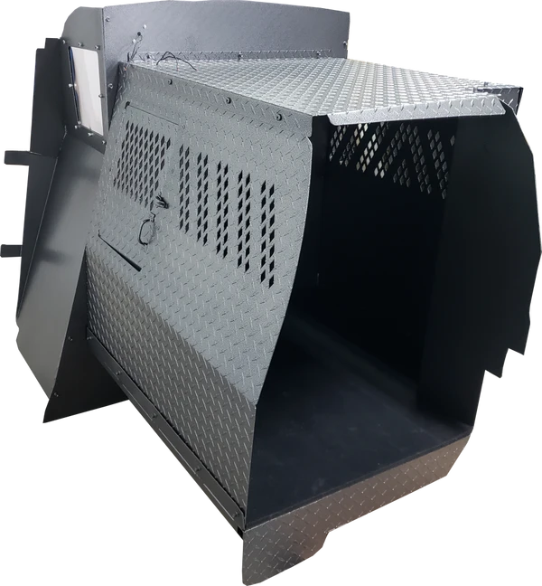 Our newly designed Police K-9/Prisoner Vehicle Insert for the Ford Interceptor SUV 2020 is truly a workhorse. This insert is custom designed per model of vehicle and is form fitted to exact specs of each model. This type of design gives you the maximum usage of your space. This also prohibits the prisoner from having any access to other parts of the vehicle and keeps your K9 partner safe & secure. This insert can be purchased in a Right or Left exit so you have the option to deploy your dog on passenger or driver side. The solid aluminum design replaces your stock seat for the prisoner with a built in all in one aluminum design so you have extra security and easy clean up. Ventilation holes allow heat and air to reach the prisoner & a plexiglas window allows you to see your prisoner while transporting. This model comes with window guards, lock & molded handle steel plate protectors.