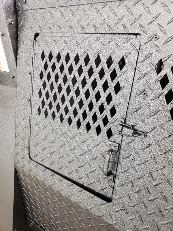 The K9 compartment has several ventilation holes on both front and back panels for maximum airflow. The Police K-9/Prisoner Vehicle Insert also comes standard with a 12″x15″ latch-able window for your K9 so that if desired they can put there head through while on patrol but more importantly you have an emergency exit to retrieve your K9 partner in an emergency. New 2020 models now come stock from Ford with doors that are ready to use so this insert comes standard with window guards, window & door handle covers for both sides of the vehicle. No need to order the upgraded option to cover latches with our inserts they are provided for no additional fee. All ActiveDogs inserts come with dark silver vein powder coating at no additional charge.