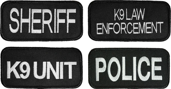 Embroidered patches for police, sheriff, K9 Law Enforcement, or K-9 Unit dogs. These working dog patches are made of a heavy backed twill fabric and are very visible. This patch measures 2”x4” in size. The color of the patch is black, the edges are finished and bound in black thread, and the center wording is white thread. These are quality patches and they come with or without a hook and loop back. If you choose the hook and loop backed patch the hook and loop is attached to the patch and you attach the other part of the hook and loop to your product. You can remove the loop part of the hook and loop to attach to your vest, harness, bags, etc.