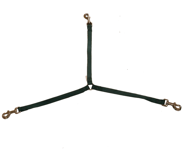 Walk three dogs at the same time with the 3 dog coupler. Each web leg/strap is 12″ long and 3/4″ wide. It is made from nylon webbing. The hardware bolt snap is made of nickel plated steel