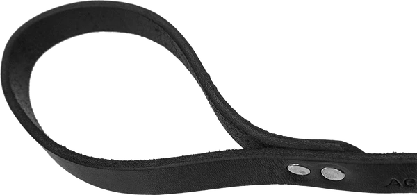 This Leather Leash is made of 3/4″ wide, supple, black latigo leather. Latigo leather is a durable, flexible, softer leather and it breaks in faster. It is dyed solid all the way through, so it will not fade. Because of the conditioners that are infused with oils during the process latigo leather is almost waterproof. It will not dry out like most harness leather. It can be easily cleaned and oiled after use. Made in the USA
