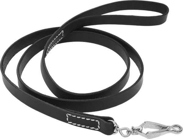 This leather leash is handcrafted one at a time and made from quality 3/4″ wide Latigo leather. It is double stitched at the top by the handle and by the snap. This leash is hand rubbed with oil finish to give it a soft luxurious finish. Latigo leather is a durable, flexible, softer leather and it breaks in faster. It is dyed solid all the way through, so it will not fade. Because of the conditioners that are infused with oils during the process latigo leather is almost waterproof. It will not dry out like most harness leather. It can be easily cleaned and oiled after use. We used only the best hardware on this leash so we put a Herm Sprenger French Scissor Snap at the end.