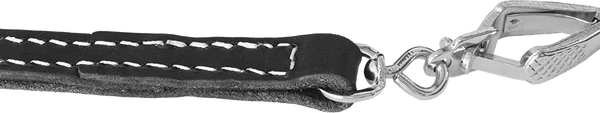 Our Leather Double Snap Leash has a scissor snap on each end. It is made of 2 layers of latigo leather that is stitched in strong white thread. Latigo leather is a durable, flexible, softer leather and it breaks in faster. It is dyed solid all the way through, so it will not fade. Because of the conditioners that are infused with oils during the process latigo leather is almost waterproof.  It will not dry out like most harness leather.  It can be easily cleaned and oiled after use.