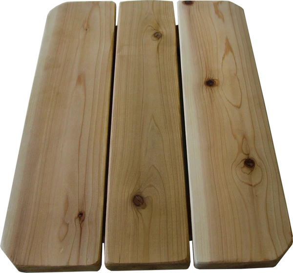 We make our cedar crate floors from #1 cedar planks. This cedar wood is a natural product so color, grain lines, wood knots will vary from floor to floor. The cedar is sanded for a smooth finish. The Natural Cedar Crate Bottom is slotted so dirt and hair fall through the cedar flooring. This is the crate floor you want for pups who are house training or dogs with weak bladders who tend to have accidents. The floor is raised off the crate floor so the dog will not be sitting in wet. The corners of the cedar floor are mitered, so the cedar floor can be grabbed from the corner and removed from the crate for cleaning. Choose from 3 sizes that coordinate with the crate size.