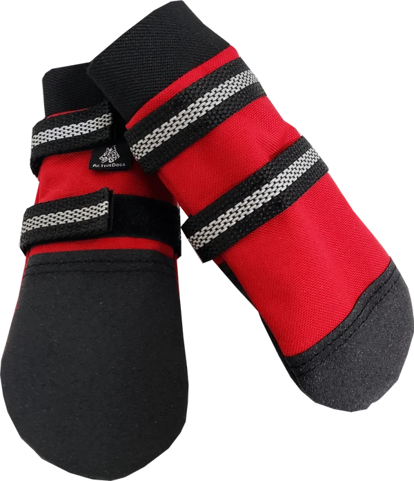 Our Non-Slip Dog boots have many features worthy of your 4 legged companion. These booties are a simple on and off style with an elastic top; which, helps in putting the boots on the dog. There are two reflective adjustable straps that hold the boots securely on your dog’s paws. The boot toe and bottom areas are covered in a PVC Resin coated fabric; This is a non-slip material giving extra grip while walking on slippery surfaces, is water resistant, and provides paw protection.