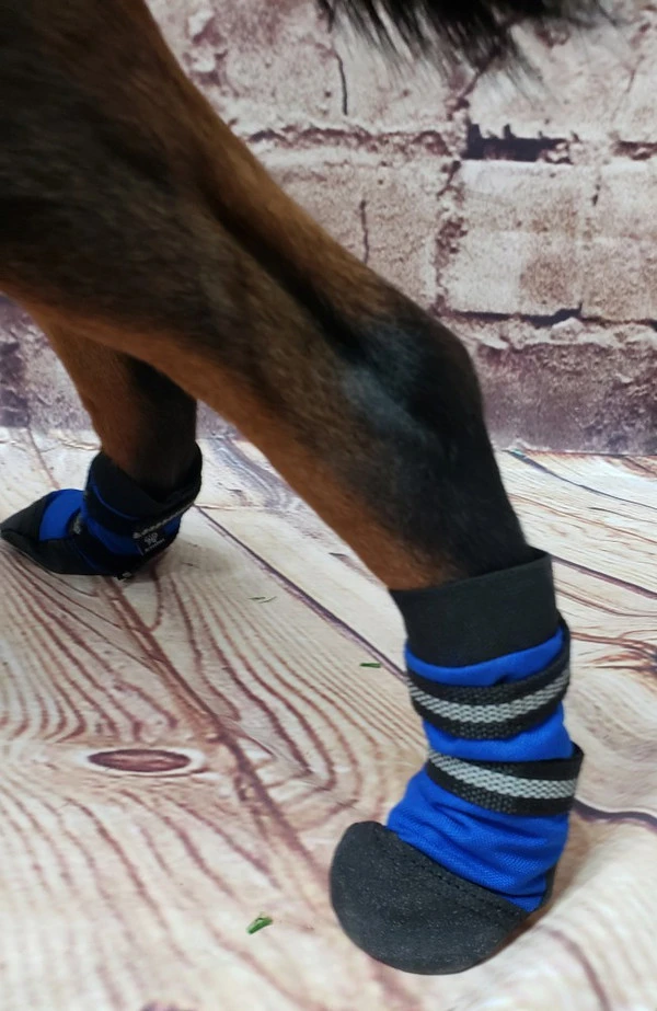 These booties are fleece lined so they are cozy warm for the dog. We offer these boots in all 13 colors of our strong denier fabric so you can match the boots with the dogs vest or harness.