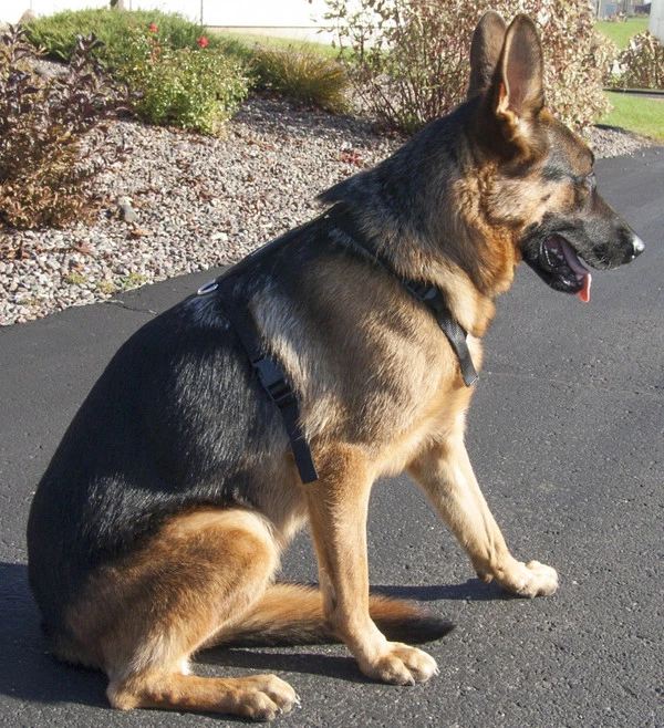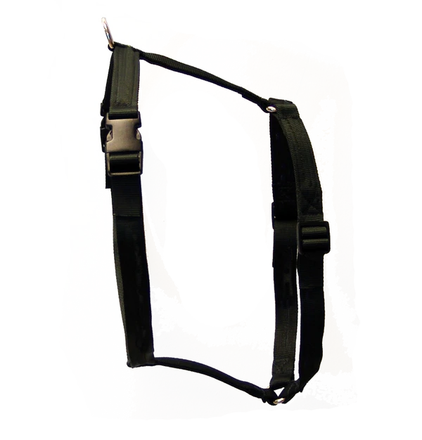 This nylon tracking dog harness is great for long tracking expeditions in wet conditions. The activedogs.com nylon tracking harness is simple but yet strong and comfortable in any environment. Constructed of 1 inch black nylon webbing, nickel plated steel D-rings, and black plastic side release buckles and slides. Made in USA