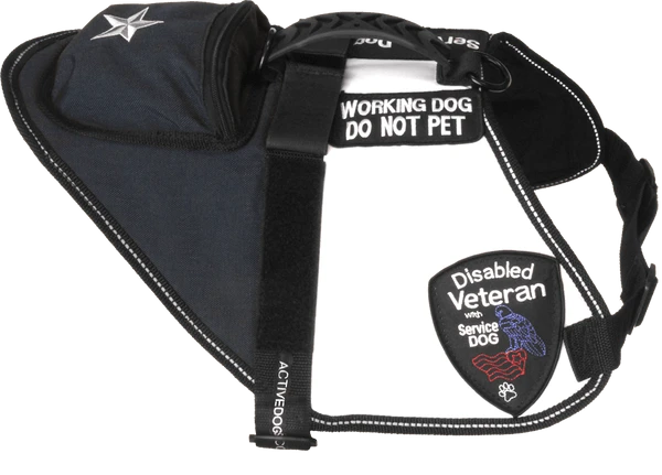 Like all the Activedogs.com vests and harnesses, the Patriotic Tri Pack Vest is made here in our USA factory. The dog vest comes in 4 sizes so now even that smaller dog can have a pack vest. The dog vest comes with 2 patches of your choice. If you are a disabled vet we are happy to furnish, at no charge to you, two disabled vet patches on this Patriotic Tri Pack Vest for you. (must specify in comment box)