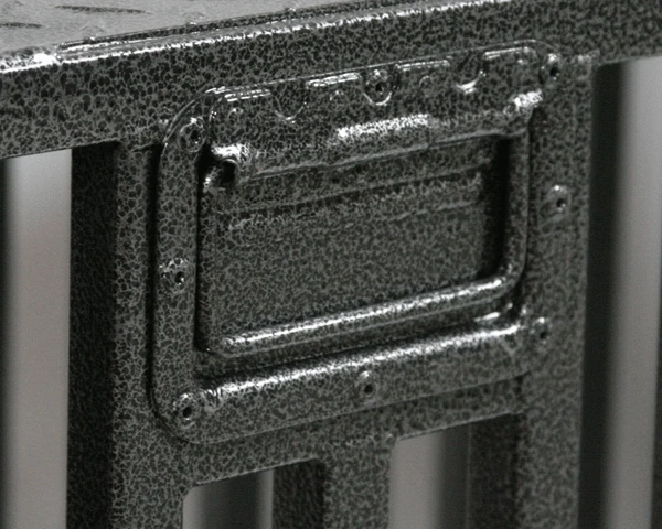 The full ventilation design permits excellent air movement on all sides. This is a great feature for dogs that remain in the crate for periods of time. Like all of our aluminum dog crates, it is TIG welded. Our powder coated aluminum crate is very durable and has a hard finish because this special coating process is done in two steps. The two layers of coating on this crate make the finish not only very hard but also extremely durable. The finish is a stunning gray fleck on black. The crates are powder coated on both the interior and exterior. Designed and made by Activedogs.com in the USA.