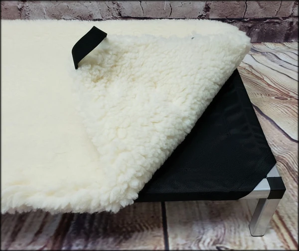Our ActiveDogs Double Layer Hi-Loft Sherpa Cushion Pad is made of high quality hospital grade sherpa. The pads are constructed with 2 layers of this thick material sewn together to give the maximum amount of cushion and durability for your dog. The Hi-Loft Sherpa Pads do not have any loose stuffing inside so they will never rot, mold or clump up like other dog beds. These pads are great for summer or winter, they will insulate your dog from the heat of the summer and protect from the cold of the winter. They come with elastic loops on all for sides to easily attached to our Ballistic Raised Dog Bed and will not slide off. The Hi-Lof Sherpa pad is also are safe to machine wash & dry.