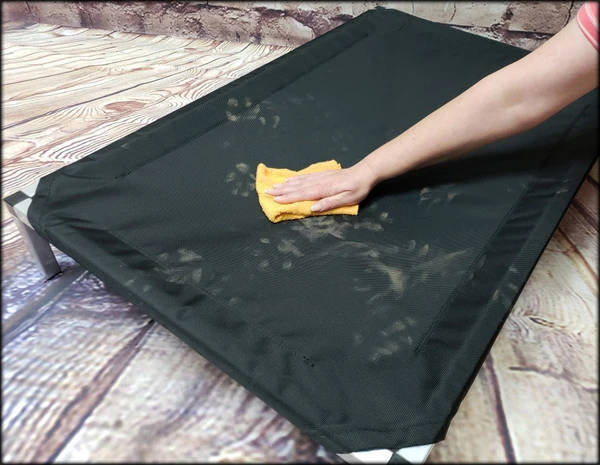 Our newly re-designed Ballistic Raised Dog Bed w/Aluminum Frame can be used both indoors or outdoors. The frame is constructed of no-rust aluminum, which does not conduct the heat so you won’t have to worry about your dog getting burned on a hot steel frame if using your bed outdoors. The newly designed ballistic cover is made from extremely durable ballistic HD fabric. This is the type of fabric that luggage & military gear is constructed from. Our ballistic materiel has a UV coating which makes it resistant to fading and very easy to wipe clean with only a damp cloth.