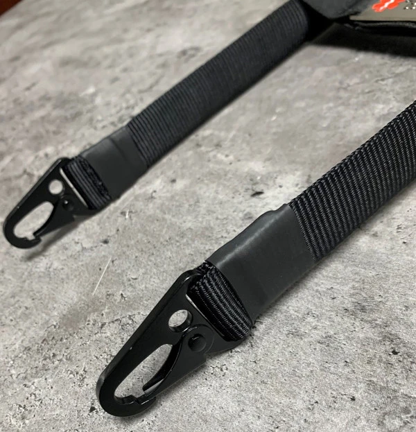 The Rigid Bridge Handle is a solid steel core bridge handle with metal HK style snaps, rubber grip handle, and a chrome service dog identification band. This bridge handle has a solid steel construction so it will stay rigid when using. The chrome service dog identification band is well done. It is engraved with the text Service Dog and two insignia’s. The band can be adjusted to the desired height you want it placed on the handle. It is also removable. The top of the Rigid Bridge Handle has a flat rubber grip. The snaps are high quality HK style metal snaps. This bridge handle is 12″ tall.