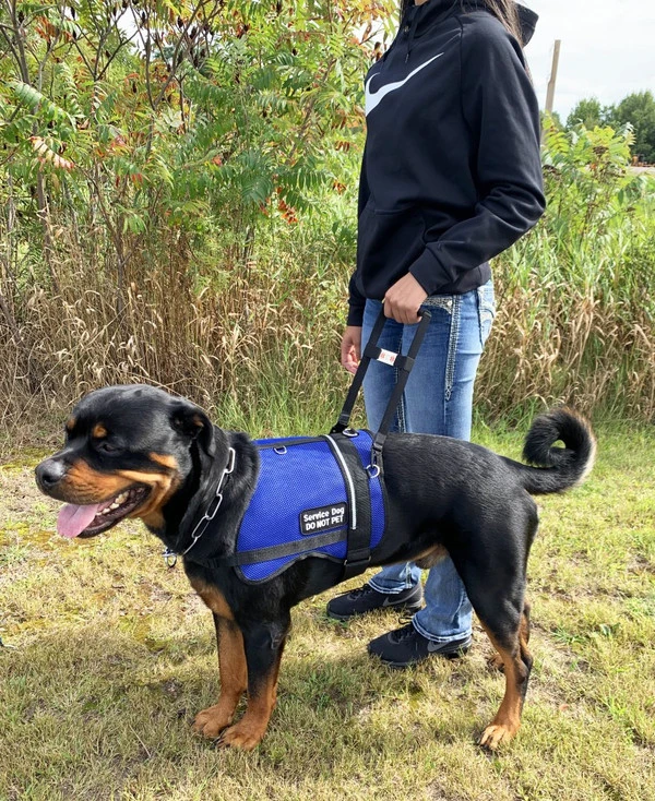 Bridge handles are used in conjunction with our service dog vests and harnesses. The purpose of the bridge handle is to give an extended reach between the dog and the handler. This handle will attach to our Guide Dog Harness, Mobility Harness, or any other of our Service Dog Vests that have the two D-rings on them.